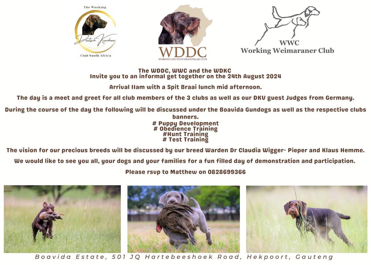 The WDDC, WWC and the WDKC Invite you to an informal get together on the 24th August 2024